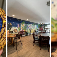 Cashews macadamia nuts chocolate chip cookie with coconut magic, macadamia nuts, blue cheesecake batter, & stuffed with a cookie don ball.