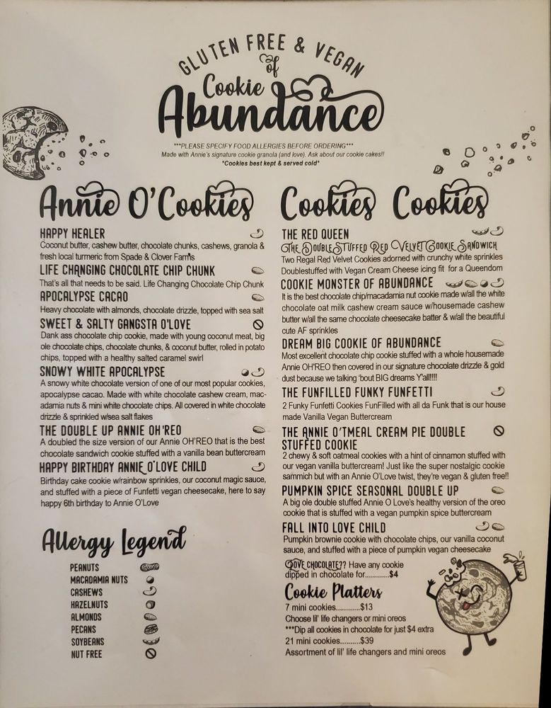 Annie O Love’s Cookie Cafe Menu