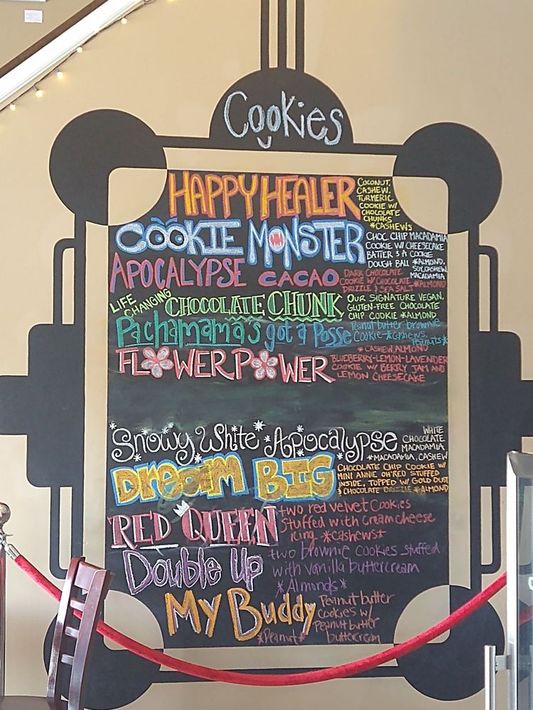 Macadamia nuts cashews white chocolate version of apocalypse cacao th cashew cream, macadamia nuts, mini white chocolate chips drizzled with white chocolate & sed salts flakes